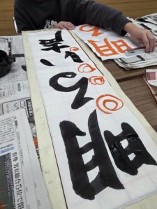 教室で使っている下敷きにはガイド線が入っています。そのガイドも頼りになりますが見にくいので半紙に直接ガイドラインを入れてお子さんに渡しています。お手本にもガイドラインを引いてありますのでその線を見てもらいどの場所から書き出すのか?を観察してもらい、一画目から書いていきます。文字の位置を決めるのにとても役立つ方法ですしバランスなどもこの方法で学んでいけると思っています。