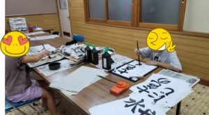 施設使用料が600円加算されます。小学校以来の筆だそうです。懐かしい墨汁の香りを楽しみながら基本から書いていきます。本人の名前までと思いましたが基本でクタクタ。