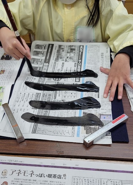 力強い線 2023年2月15日 最終更新日時 : 2023年2月15日 Hiro 小一女の子です。とても良い線を書いてくれます。納得いくまで帰りたくない。この文字が気に入らないとはっきりと伝えてくれます。写真にあるように教室では新聞紙を使って基本練習をします。半紙を基本練習に使うともったいないしお金もかかります。大先生の教室がそうしているので同じようにしています。とてもイキイキとした線です \ 最新情報をチェック / FacebookXBlueskyHatenaCopy