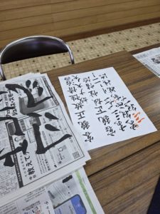 日曜レッスンに限らず、書に慣れてくると不思議なのですがシ~~ンっとした時間が長くなるような気がします。多分、慣れて書き方が理解出来て自分の納得のいく作品を書こうという気持ちが働くからかな?(違うかな)わかりませんが教室で […]