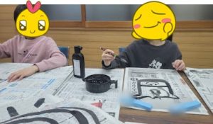 小2の女の子。墨で汚れるのを防ぐため保育園時代のスモックを着てレッスンに来ています。慣れないと墨で汚れてしまう。入会して間もないのでまだまだ基本練習の段階なのですが小さな手で一生懸命書いてます。縦線横線を書いて「下」とい […]