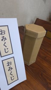 おみくじを手作りしよう=小3女の子。要望に応えて段ボールでベースだけ私が制作。う~~んっ。もっと上手に作れたら良いのですが私のスキルではこれが限界ですね。小3の子のセンスは抜群でした。ベースに色紙やシールを飾って素敵な仕 […]