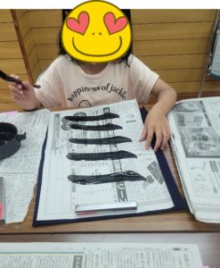7月の課題 小2は「ほたる」です。ちなみに小1は「ほし」学年が上がった事で二文字が三文字になり一気に半紙への配置が難しくなります。級を取得するお子さんはこの課題必須ですが、級取得ではなくマイペースで学ぶ場合気楽に二文字や […]