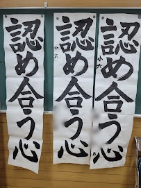 「認め合う心」がJAの課題です。大きな半紙に立って書きました。下に置いて書く事も可能ですが、公民館の下はちょっと凸凹しているので立って長テーブルの上で一文字ずつ書きました。小学校6年男子。1時間の間に8枚ほど書く集中力は […]