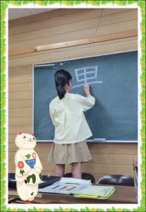 今日は無料体験に仲良しご兄弟が来てくれました。まずは筆を持ってもらいその後基本を説明。今日のお子さんは筆を持ちなれていました。公民館には黒板があるのですがその黒板が大人気。文字を黒板でも書いたりして。ただし毛筆でも黒板で […]